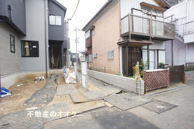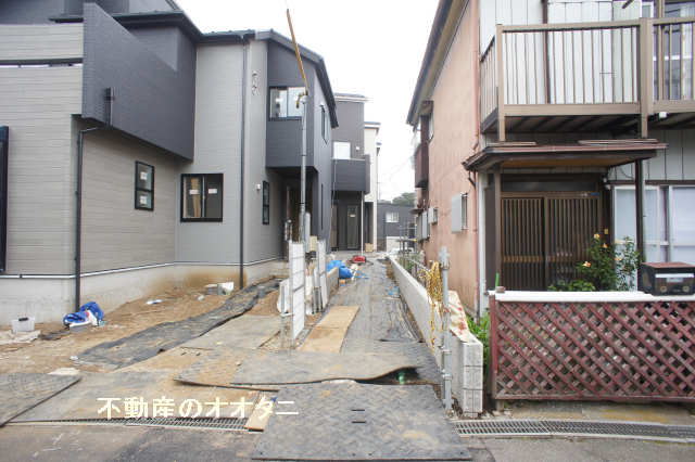 | チェックポイント | ※私道持分:23.04㎡分の23.04㎡ ※セットバック済:23.04㎡(各2分の1ずつ) ※路地上部分:1号棟約27㎡ ※協定道路:敷地面積に含む(1号棟:0.54㎡) ※1号棟敷地の一部(隅切り部分)について2号棟所有者と地役権設定契約を締結いたします。 ※用途境がございます。 ・前面道路は行き止まりとなっております。 ・周辺は狭い道路や急勾配の箇所もございますので、通行の際はご注意ください。 |