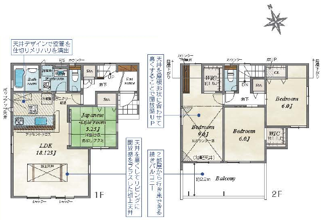 | 間取詳細 | (1F)LDK18.125、(2F)和5.25、(2F)洋9.0、(2F)洋6.0、(2F)洋6.0 | ||