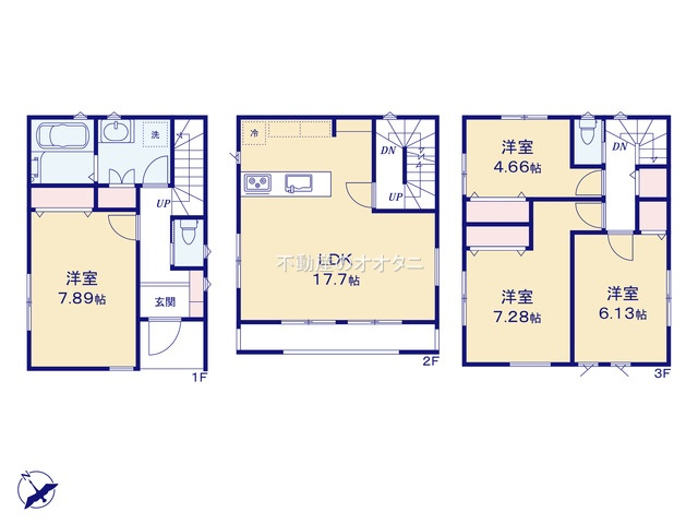 | 間取詳細 | (1F)洋7.89、(2F)LDK17.7、(3F)洋7.28、(3F)洋6.13、(3F)洋4.66 | ||