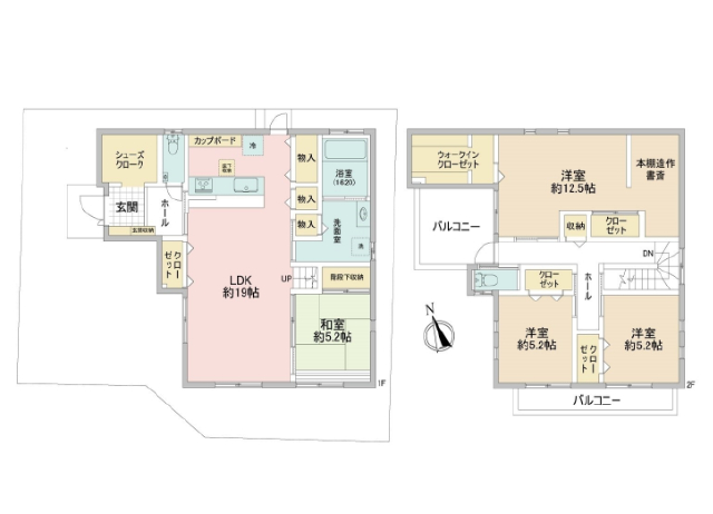 | 間取詳細 | (1F)LDK19.0、(1F)和5.2、(2F)洋12.5、(2F)洋5.2、(2F)洋5.2 | ||
