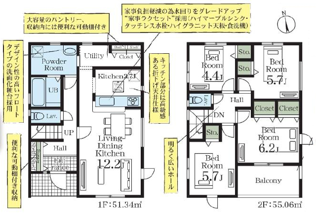 間取詳細 | (1F)LDK12.2、(2F)洋6.2、(2F)洋5.7、(2F)洋5.7、(2F)洋4.4 |