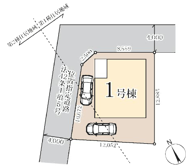 | 接道 | 北東 4m(幅員) 私道 北西 4m(幅員) 私道 |