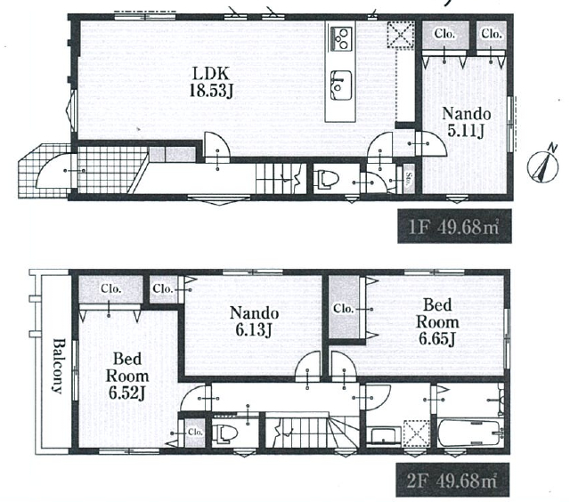 間取詳細 | (1F)LDK18.35、(1F)納戸5.11、(2F)洋6.65、(2F)洋6.52、(2F)納戸6.13 |