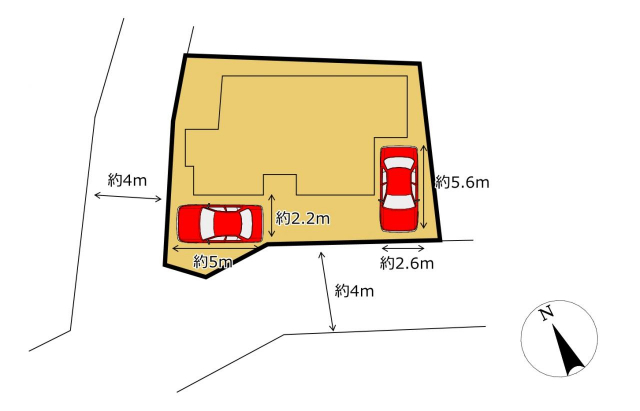 | 接道 | 南西 4m(幅員) 私道 北西 4m(幅員) 私道 |
