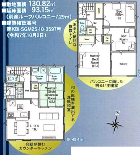 | 間取詳細 | (1F)LDK16.0、(1F)和4.5、(2F)洋8.5、(2F)洋6.0、(2F)洋5.0 |
