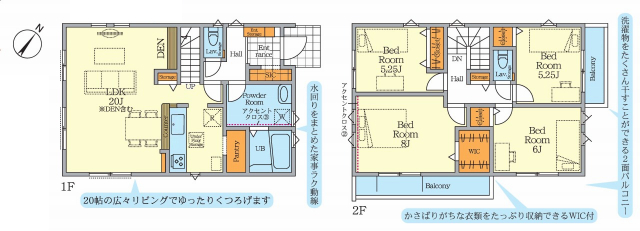 | 間取詳細 | (1F)LDK20.0、(2F)洋8.0、(2F)洋6.0、(2F)洋5.25、(2F)洋5.25 |