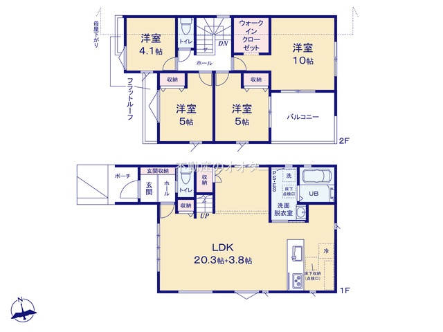 | 間取詳細 | (1F)LDK24.1、(2F)洋10.0、(2F)洋5.0、(2F)洋5.0、(2F)洋4.1 |