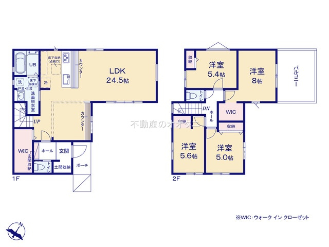 | 間取詳細 | (1F)LDK24.5、(2F)洋8.0、(2F)洋5.6、(2F)洋5.4、(2F)洋5.0 |