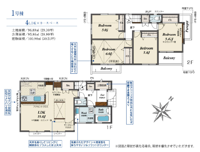 | 間取詳細 | (1F)LDK19.0、(2F)洋6.0、(2F)洋5.42、(2F)洋5.0、(2F)洋5.0 |