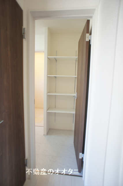 ◇キッチン横に可動棚付きのパントリーを設けました。