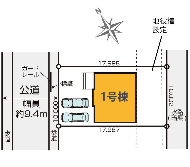 | 接道 | 北西 9.4m(幅員) 公道 位置指定無 |