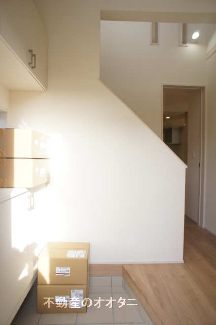 ◇上部が吹き抜けとなっている玄関。上から柔らかい光が差し込みます。