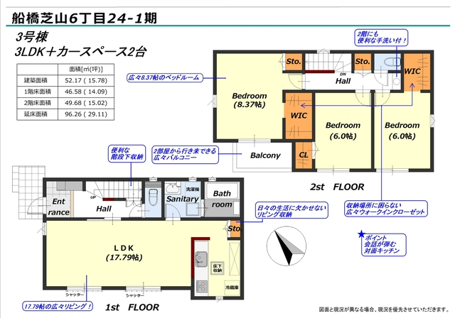 | 船橋市芝山6丁目 新築一戸建て リナージュ【3号棟】 不動産のオオタニなら仲介手数料無料0円!でご紹介しております♪→無料の秘密はこちら ◆◆3号棟について◆◆ ◇2路線3駅がご利用可能な住宅街に建つ、全3棟の新築住宅です。 ◇駐車場は最大2台分のスペースを確保。 ◇ご家族の様子がよく見える対面式のキッチンとなっております。 ◇水回り集中設計。家事動線に配慮しました。 ◇デッドスペースも賢く活用した階段下収納。 ◇全室南向きとなっております。 ◇2階にはウォークインクローゼットが2箇所ございます。 ◇約8.37帖とゆとりある広さの主寝室も魅力的ですね。 ◇南側に面した陽当たりの良いバルコニー。 |