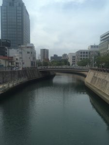 県庁近くの川のほとりで