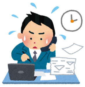 机の上には書類の山が・・・